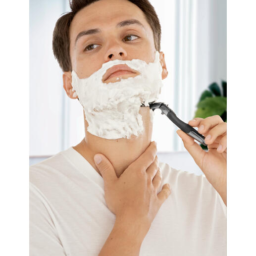 Die Revolution in der Nassrasur: Der 30° schwenk- und neigbare 3D-Kopf rasiert extra gründlich und schonend.