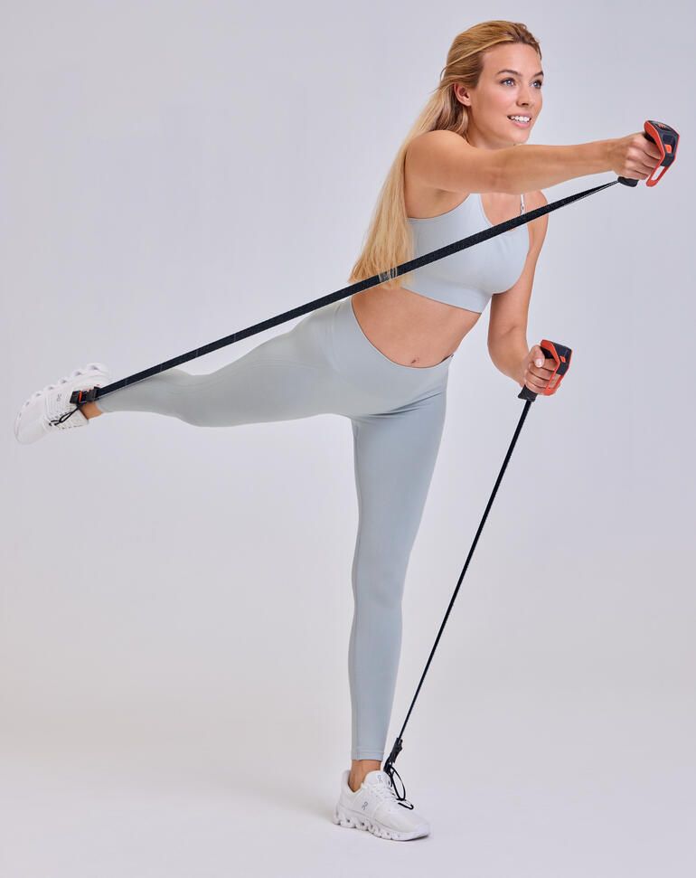 Multifunktionelles Trainingsgerät mit patentiertem Griffsystem und speziell entwickelten Flexbändern.