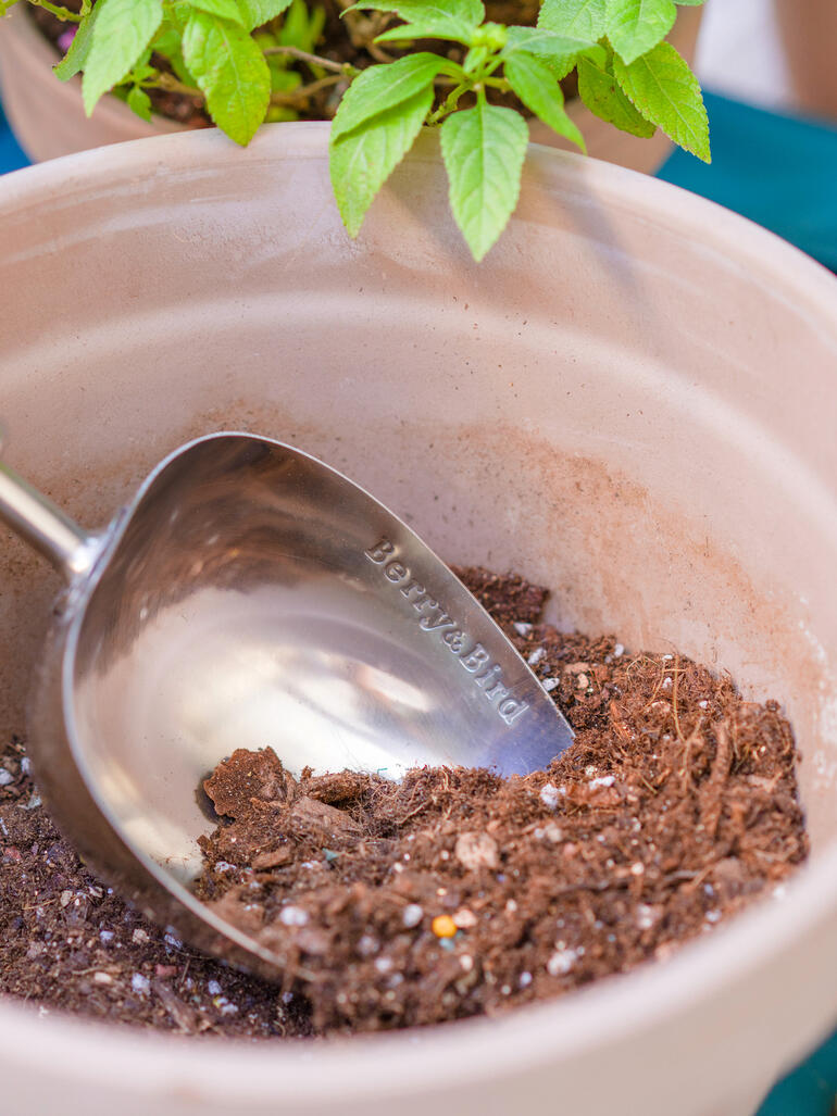 Leichter ein- und umtopfen. Wohldosiert Erde, Samen, Kompost schöpfen und verteilen.