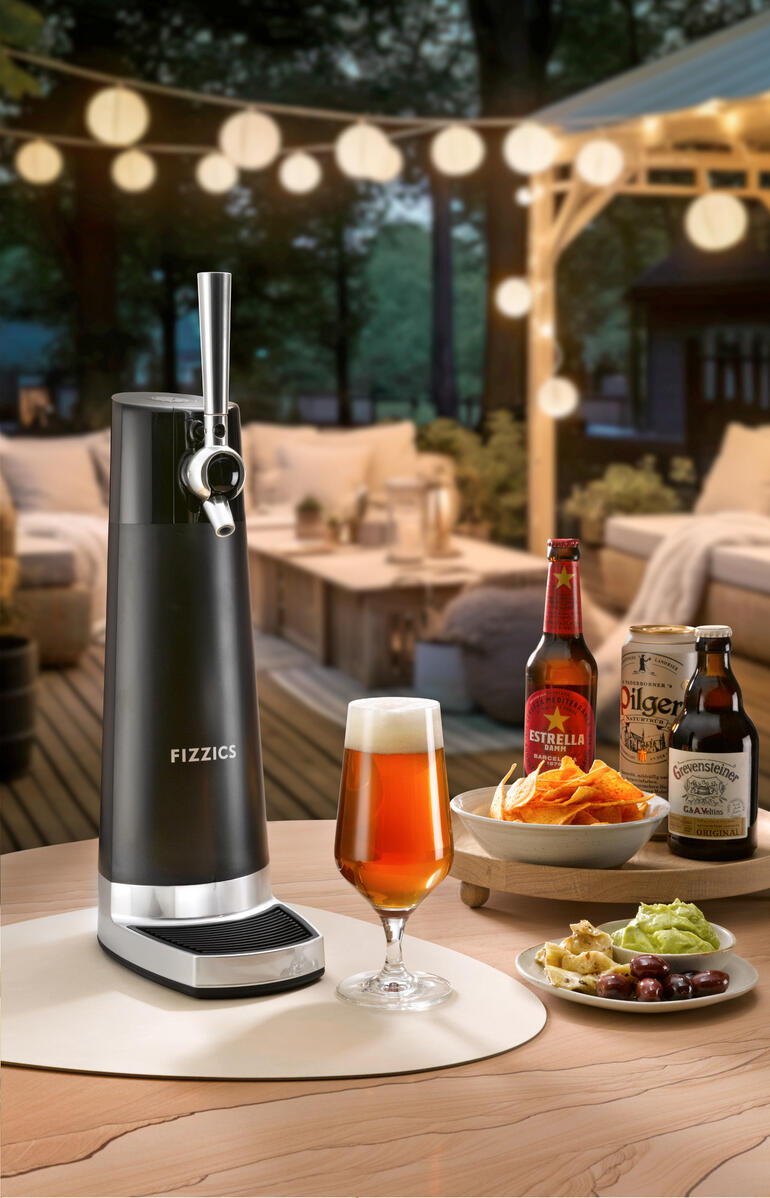 Der Biersonikator mit Ultraschall-Technologie für feinsten, aromatischen Schaum: So schmeckt auch Flaschenbier wie frisch vom Fass.